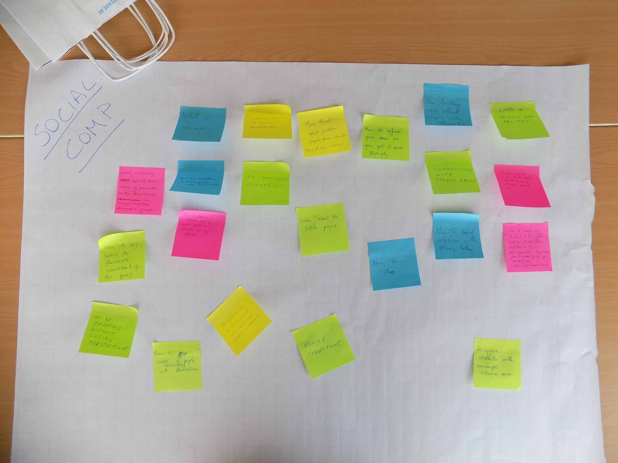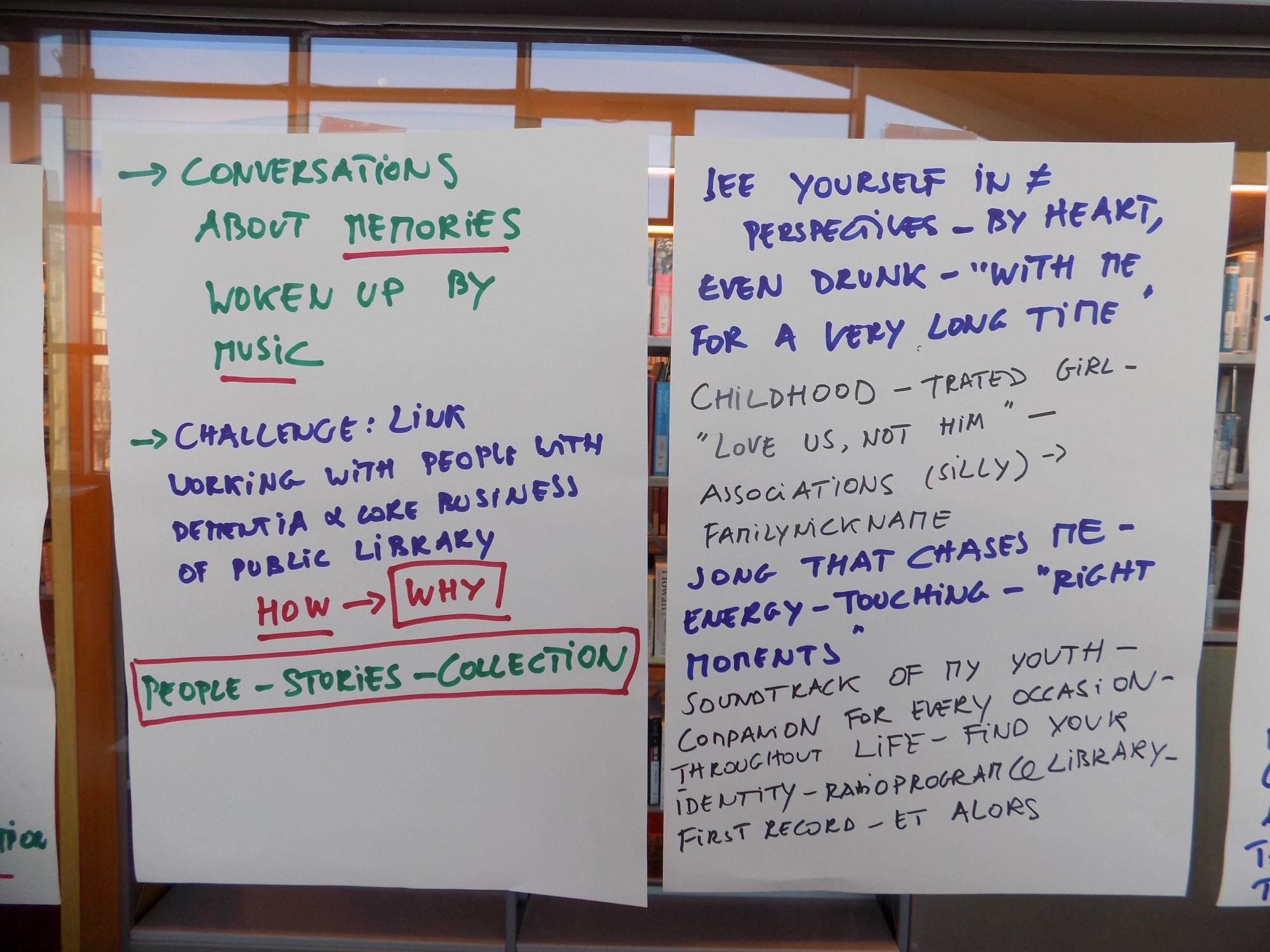 After two rather theoretical days, on the 3rd day we changed to concrete thinking. How can we lead people with dementia to the library? How should a project that can teach us how to handle this target group, look like? Why should the library do this project? Those were a few questions…